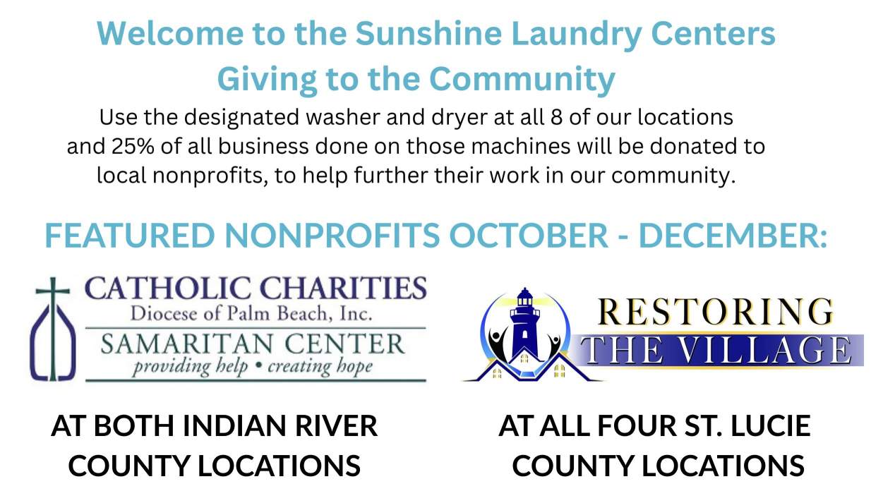 Sunshine Laundries has eight convenient locations on the Treasure Coast: Vero Beach, Ft. Pierce, Port St. Lucie and Okeechobee