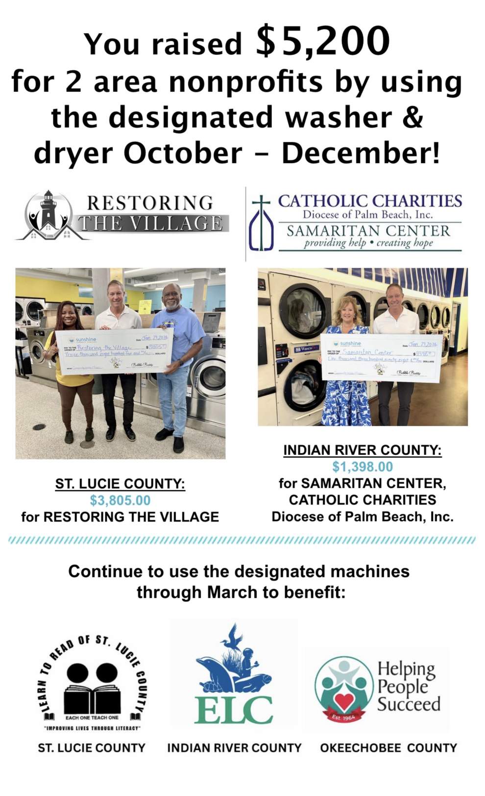 Sunshine Laundries has eight convenient locations on the Treasure Coast: Vero Beach, Ft. Pierce, Port St. Lucie and Okeechobee
